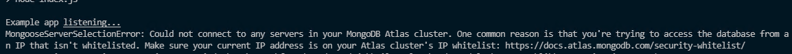 Could not connect to any servers in your MongoDB Atlas cluster.
